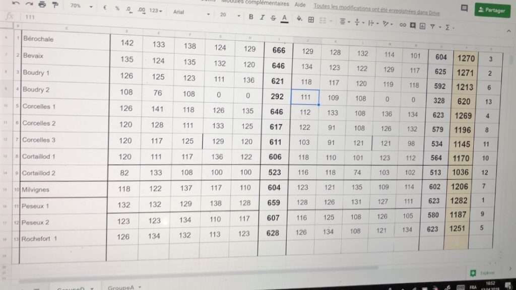 Tournoi intersociétés à Boudry Groupe A et D